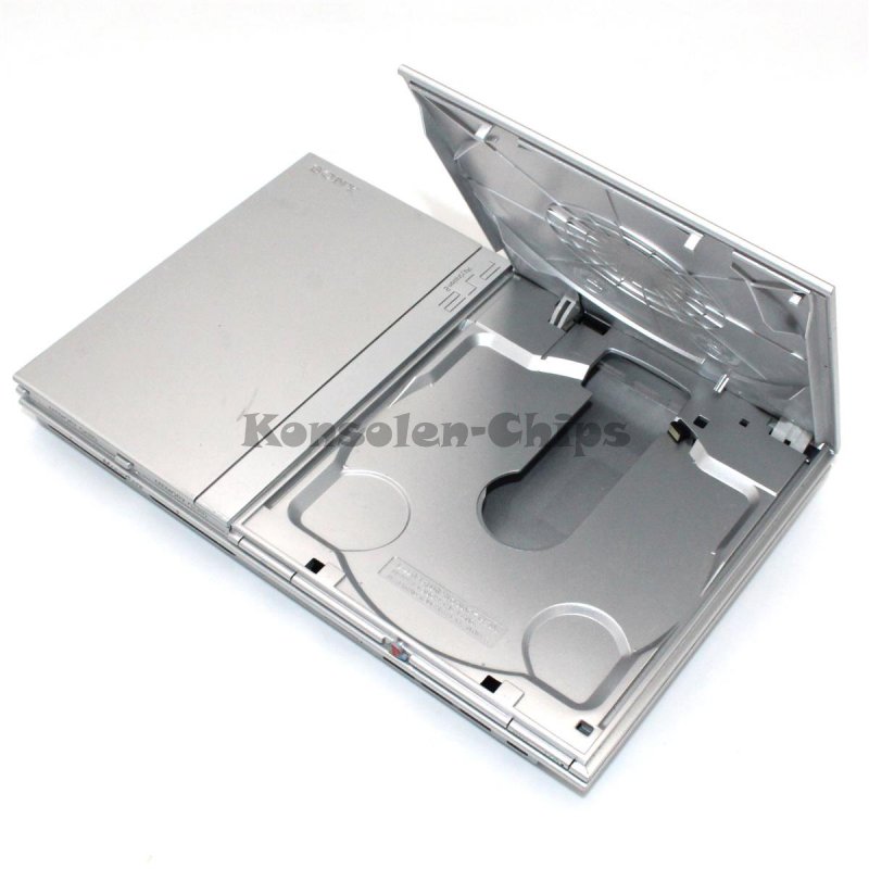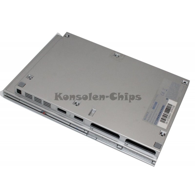 Angeboten wird ein originales Gehäuse in Silber für die Sony PlayStation 2 Slim, Modell SCPH-70004.