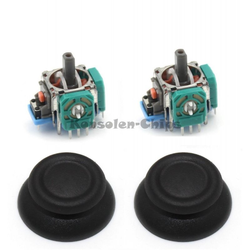 Sie können auswählen ob wir nur den einen oder beide Analog Stick austauschen sollen. Die Thumbsticks, die schwarzen Knüppel, werden nicht mit ausgetauscht. Dies ist nur nötig wenn sich das Gummi von den schwarzen Thumbstick löst. Falls diese auch ausgetauscht werden sollen, können Sie dies ebenfalls mit bestellen.